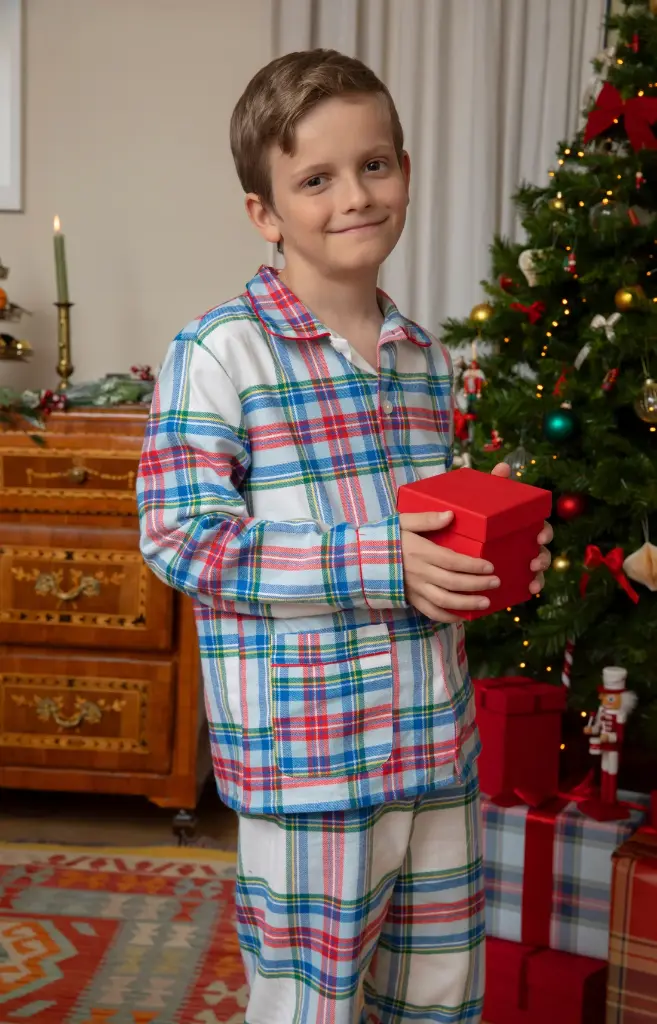Pyjama long enfant boutonné ARTHUR "Logan" PYE - Blanc Carreau LOGAH24